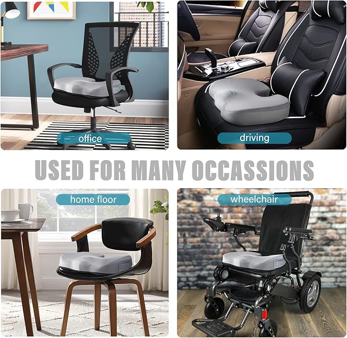 • Multi-purpose Desk Chair Cushion: Our coccyx seat cushions pillow is suitable for various seats on most occasions, office chair, car seat driver, desk chair at home, airplane seat , outdoor or wheelchair
