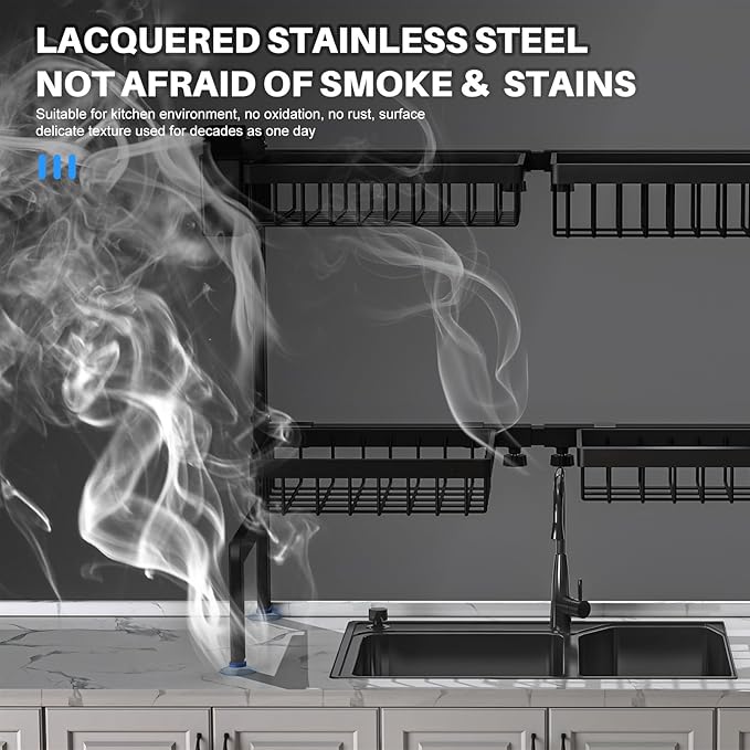 2 Tiers 4 Baskets (one More Than Others) Over The Sink Dish Drying Rack,fits All Sinks (from 24.8" to 35.4"),2-Tier Adjustable Sink Rack,Dishes Rack Kitchen Storage Organizer Space Saving