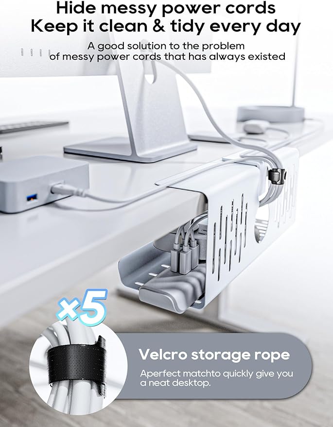 • NO NEED TO DRILL, BUT STRONGER——Fix the under-desk cable tray with the clamp-clip and tighten it, 3s to complete. The important thing is that it doesn't damage your table.
