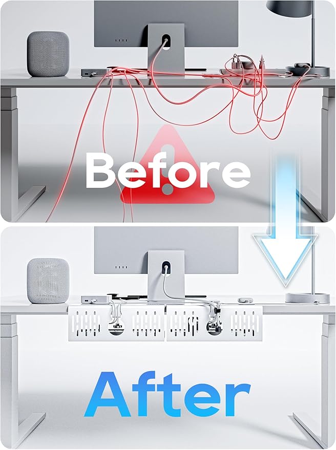 • NO NEED TO DRILL, BUT STRONGER——Fix the under-desk cable tray with the clamp-clip and tighten it, 3s to complete. The important thing is that it doesn't damage your table.