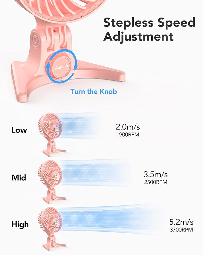 • 【Stepless Speed Regulation】Turn the knob and enjoy wind from gentle to strong, or any speed you want in between. More speed options will meet your needs in different scenarios, allowing you to find the perfect coolness.