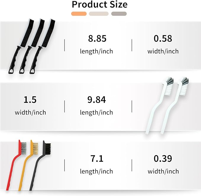 • 【Satisfaction & Reliable Support】 Your satisfaction is our priority! The 8-piece crevice cleaning brush set is backed by responsive customer service. If you have any questions or concerns, please contact us anytime.