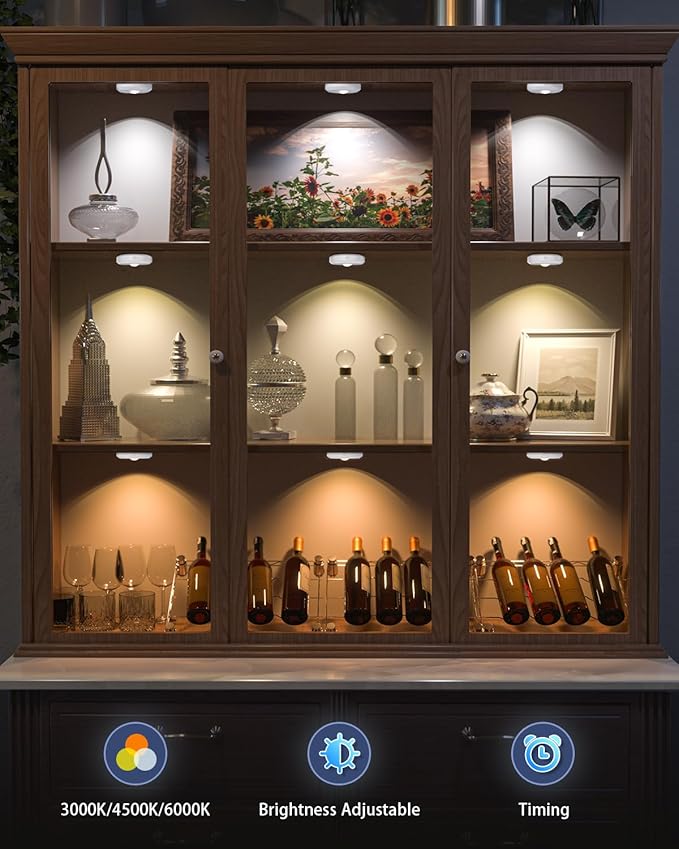 • 【Super Bright & Timer】LED puck lights with large spotlight bead for enhanced brightness. Timer auto - off at 15, 30, or 60 minutes.
