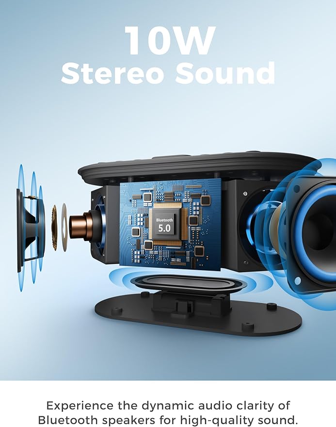• Bluetooth Connectivity for Seamless Streaming: Experience exceptional audio with 10W stereo Bluetooth speaker, designed to deliver powerful, crystal-clear sound.