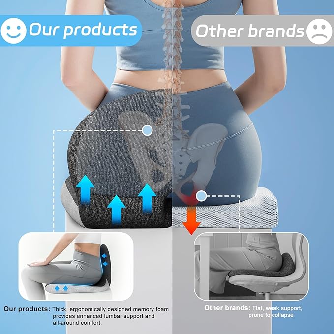• 【Ergonomic Design】Designed with an ergonomic structure that follows the natural curves of your lower back and hips. Dual-zone support evenly distributes body pressure and helps reduce muscle tightness during prolonged sitting, ideal for office work and driving