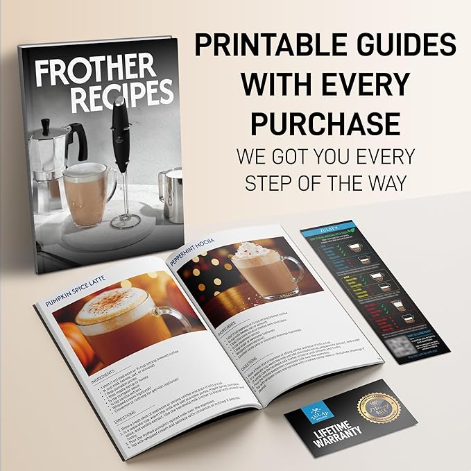 • PROVEN AND TRUSTED QUALITY: Made with high-quality materials, this coffee frother handheld works on all types of milk—whole, almond, soy, cashew, or cream. Backed by the Zulay Lifetime Guarantee, it won’t rust or break.