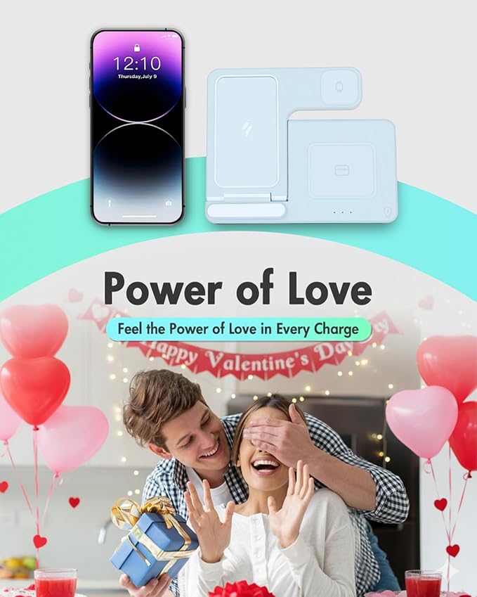 • 3 in 1 Wireless Charger Station: This 3-in-1 wireless charger is designed to work seamlessly with a variety of devices, including iPhone 17 16e 16 15 14 13 12 11 8 Pro Max Mini Plus X XR XS Max SE Plus Series, Apple Watch Series 11 10 9 8 7 6 5 4 3 2 SE and Ultra, AirPods 2 3 Pro 2 Pro 3 Airpods 4 (ANC), (Note: for Airpods 2 3 4, needs work with a MagSafe charging case). A perfect Christmas present for couple (to husband or wife), son, daughter, or any loved ones.