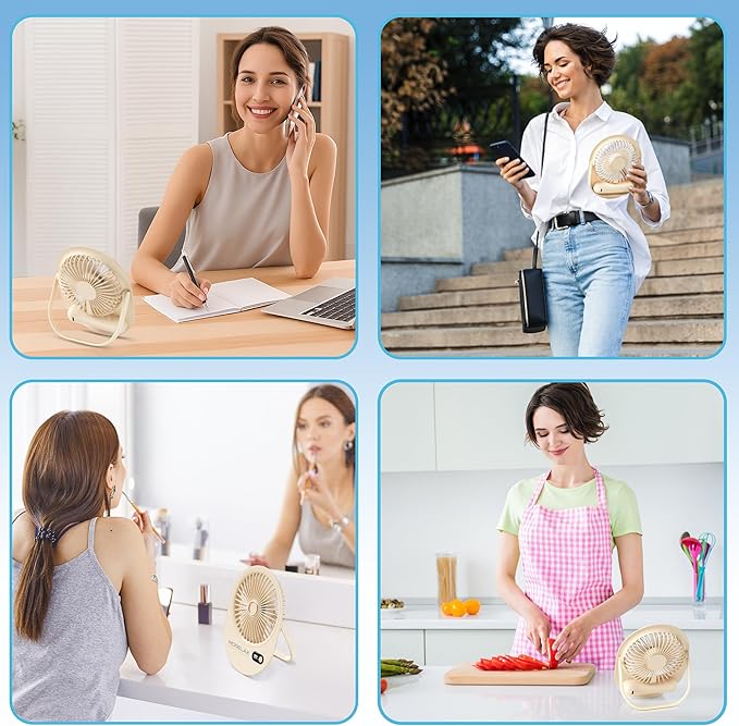 • 【 2-In-1 USB Desktop Fan】 Built-in battery + Plug-in Use: A USB rechargeable desktop fan with brushless motor and plug-in or battery mode, providing cooling at any time. Makeup fan is ultra-quiet and suitable for makeup, offices and bedrooms.