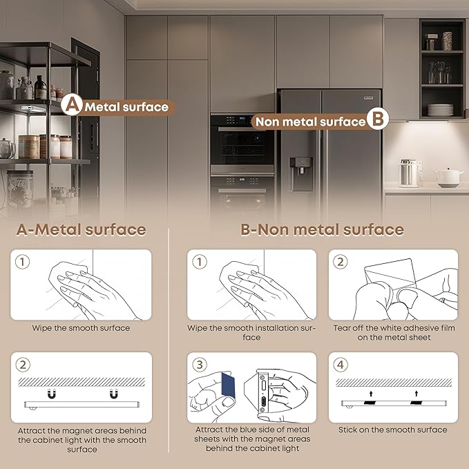 • ★Convenient Installation: The equipped adhesive metal plates adhere to a flat surface on one side and are magnetically attracted behind the lamp on the other side. Such installation design is easy to disassemble for charging or repositioning