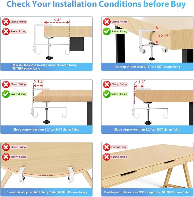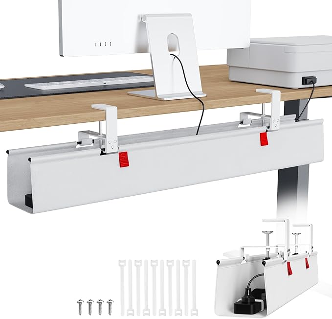 • [Easy Installation] - Installation is a breeze with the choice of clamp or screw mount support, ensuring a quick and convenient setup without the need for drilling. The sturdy construction of this desk wire management tray, along with 7 included fixed belt, makes it a durable and long-lasting solution for all your cord organization needs.