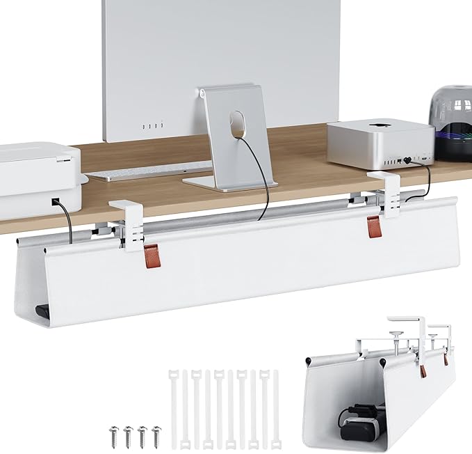 Zilink Large Cable Management Under Desk 40" No Drill Desk Cable Management Clamp/Screw Mount Fabric Cable Tray Sturdy Waterproof Cable Organizer for Office, Home, White
