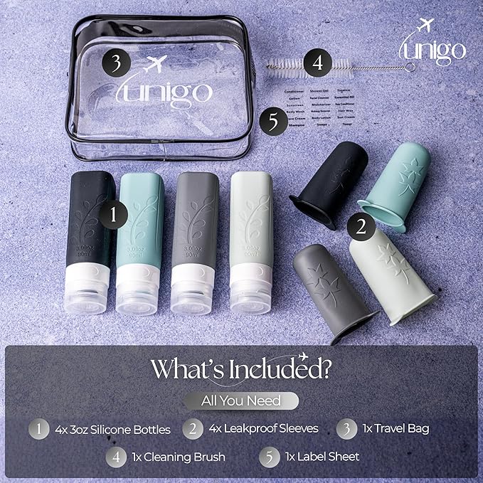 • 【Unigo Premium Travel Size Bottles】 Leakproof Travel Bottles – Safely store shampoo, conditioner, lotion, and other toiletries in carry-on luggage or gym bags.