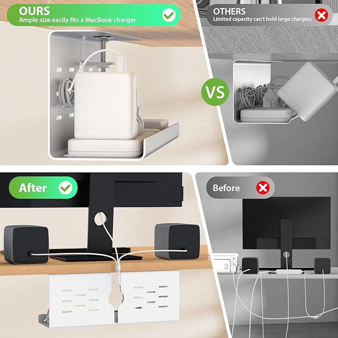 • 【Adaptable to Multiple Scenarios】Wire cable management sleek design blends under any desk. Use for cable storge monitors, PC setups, chargers, or as a small under desk shelf. Creates a cleaner, safer, and more professional workspace.