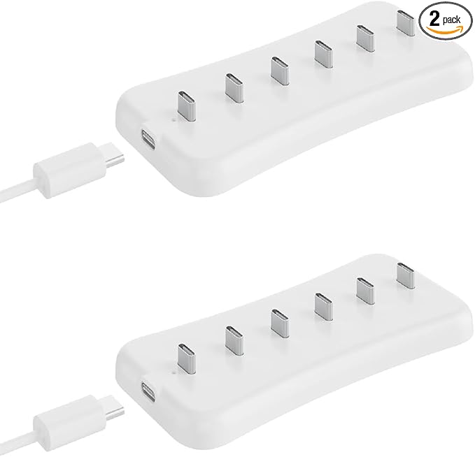 • 【 USB-C 6-in-1 Charging Station 】 Rihvy Lamp charging station is equipped with 6 type-c charging ports and can charge 6 lamps simultaneously. If used in conjunction with rihvy under cabinet lights, the charging indicator light on the lamp body will go out after a full charge. (Note: It is not recommended to use a fast charging head.)