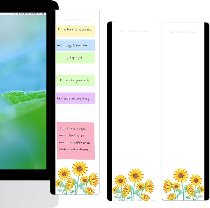 • DURABLE MATERIAL: Left and Right Display sides panel is made of transparent acrylic material, durable, simple and stylish. Monitor memo board is easy to fit, just tear off the sticker and hang it on the edges of both sides of the monitor screen.